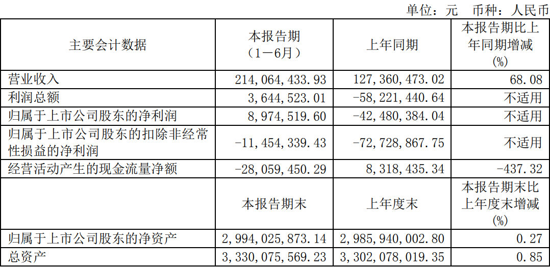 8月22日晚间,长光华芯发布2025年半年度报告。上半年实现营业收入2.14亿元,同比增长68.08%,环比增长27.05%;归母净利润为897.45万元炒股配资融券,去年同期为-4248万元,实现扭亏,同比增长121.13%,环比增长319.67%;扣非归母净利润为-1145.43万元,去年同期为-7272万元。